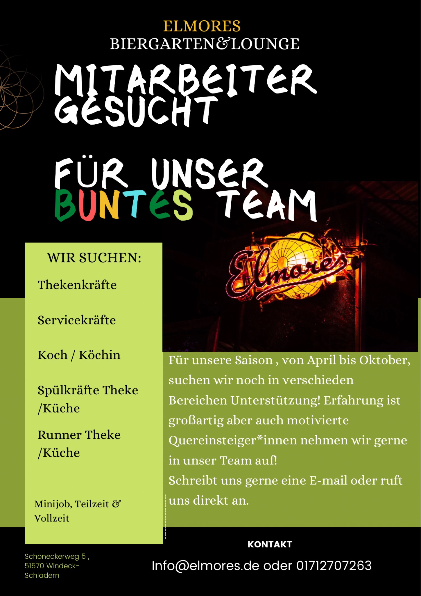 Der Elmores- Biergarten sucht Verstärkung für die Saison 2026!